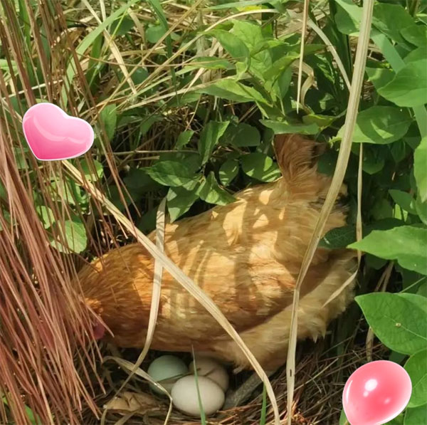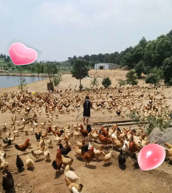 鸡场拥有清澈的池塘和一口120米深的自打水井,井水富含多种矿物质元素,为鸡群提供优质的饮用水源。此外,还有油菜地、稻田环绕,山坡上松树、灌木成片,为鸡群营造了宜居的自然环境。鸡舍具备良好的通风设计,确保空气质量,提升鸡群生活品质。